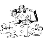 A woman sitting in a box holding a gift