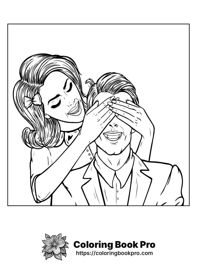 A woman covering a mans eyes with her hands (love hearts_228)