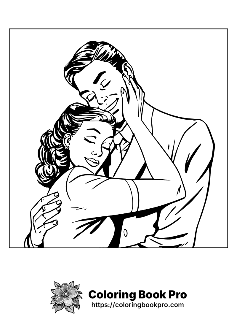 A black and white picture of a man and woman hugging (love hearts_230)